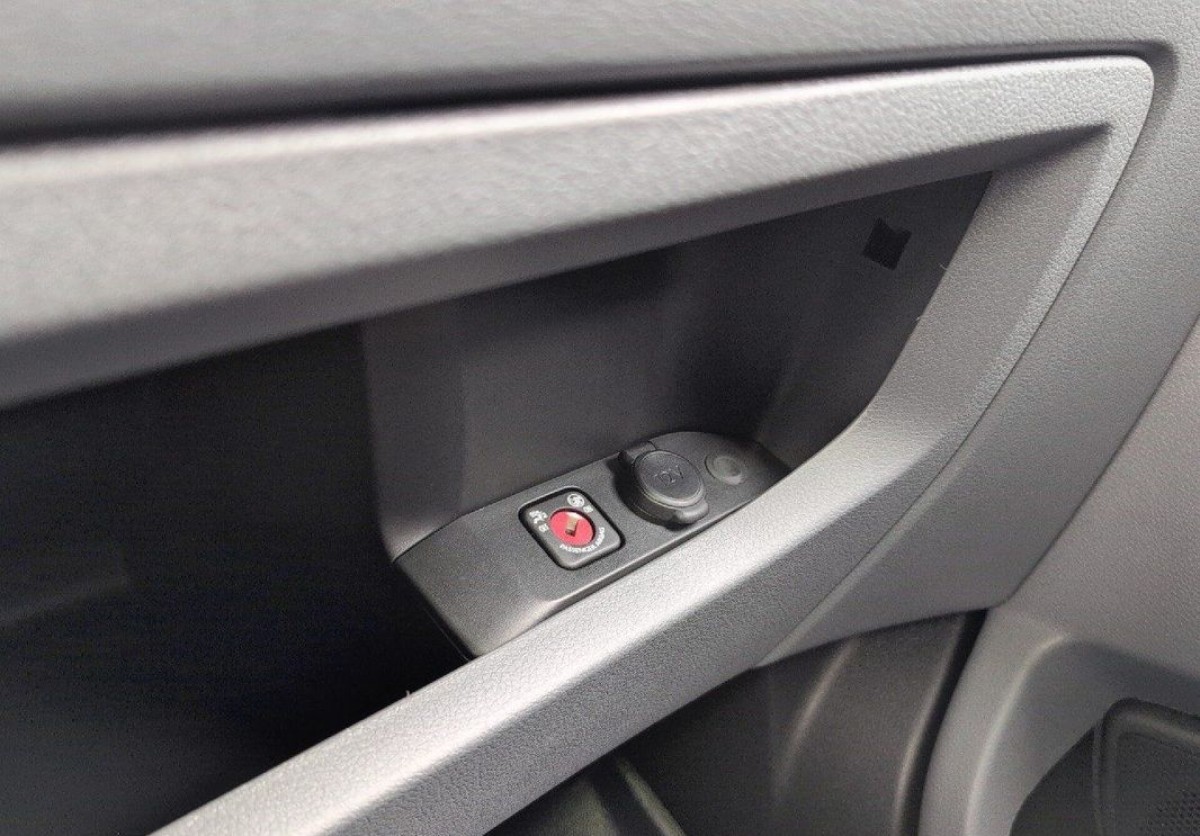 Fotel kierowcy z podłokietnikiem, reg. wys. i lędź.+ Kanapa pasaż. 2-miejsc. ze schowkiem