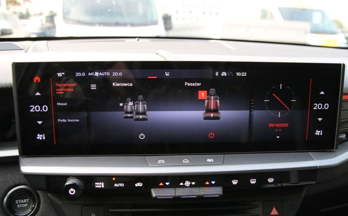 Fotele przednie AGR Intelli-Seat Pro, reg. w 10 kier. ,podgrz., went., z masażem, kierowcy z pamięć, Kieszenie na czasopisma i smartfony z tyłu foteli, Lusterko wsteczne elektrochromatyczne, bezramkowe, System kontroli jakości powietrza Clean Cabin, Tapicerka skórzana Nappa perforowana (z elementami ze sztucznej skóry), Zagłówki przednie 4-kierunkowe