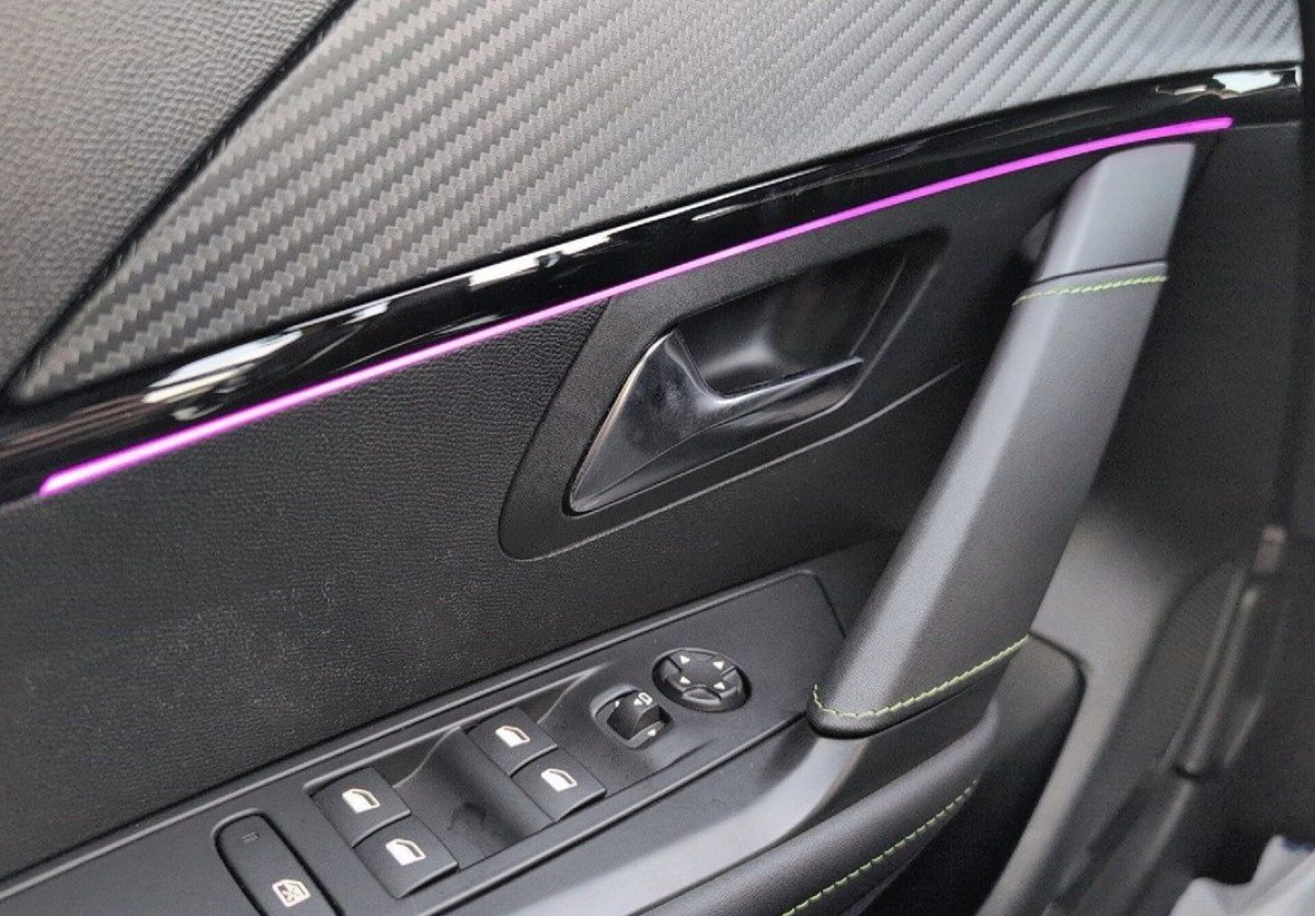 Panele przednich drzwi z dekoracją Carbon i listwą w błyszczącej czerni z podświetleniem (8 kolorów)