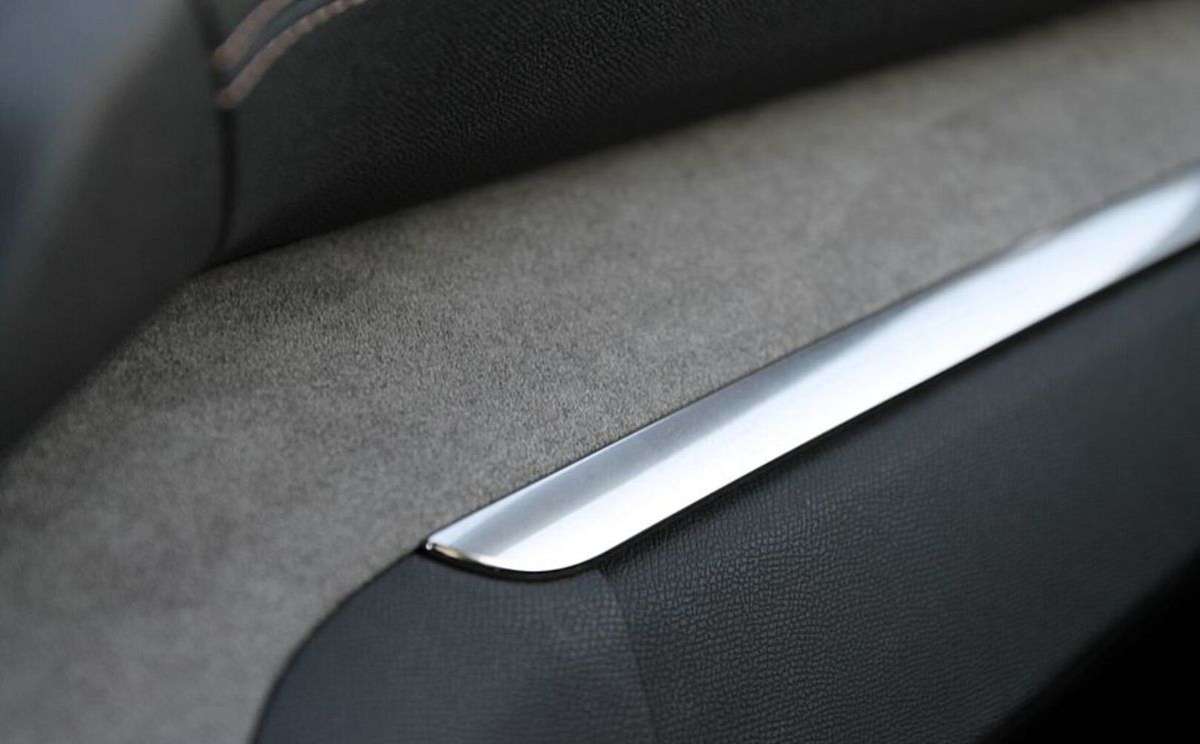 Deska rozdzielcza i panele drzwiowe wykończone Alcantarą