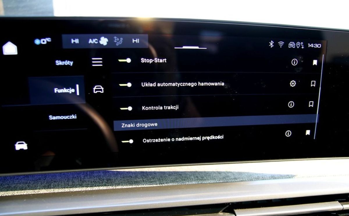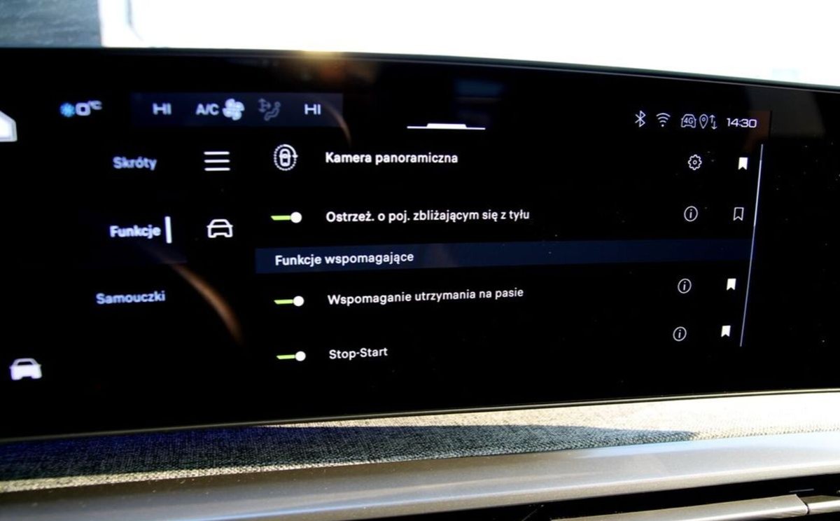 (Alarm obwodowy, objętościowy, z czujnikiem przechyłu, Asystent świateł drogowych HBA (High Beam Assist), Blokada uniemożliwiająca otwarcie zablokowanych drzwi od środka, Kierownica kompaktowa, podgrzewana, obszyta skórą licową ze zintegrowanymi elementami sterującymi, Lusterka zewnętrzne podgrzewane, elektr. sterow. i składane z ośw.powitalnym, pochylane na wstecznym, Monitorowanie martwego pola na dużą odległość z asystentem zmiany pasa ruchu, Ostrzeżenie o ruchu poprzecznym z tyłu, Tempomat adaptacyjny z funkcją Stop&Go, VisioPark 360: 4 kamery HD (przód, tył i boki) oraz przednie, tylne i boczne czujniki parkowania)
