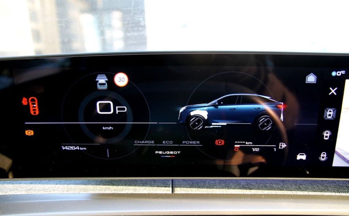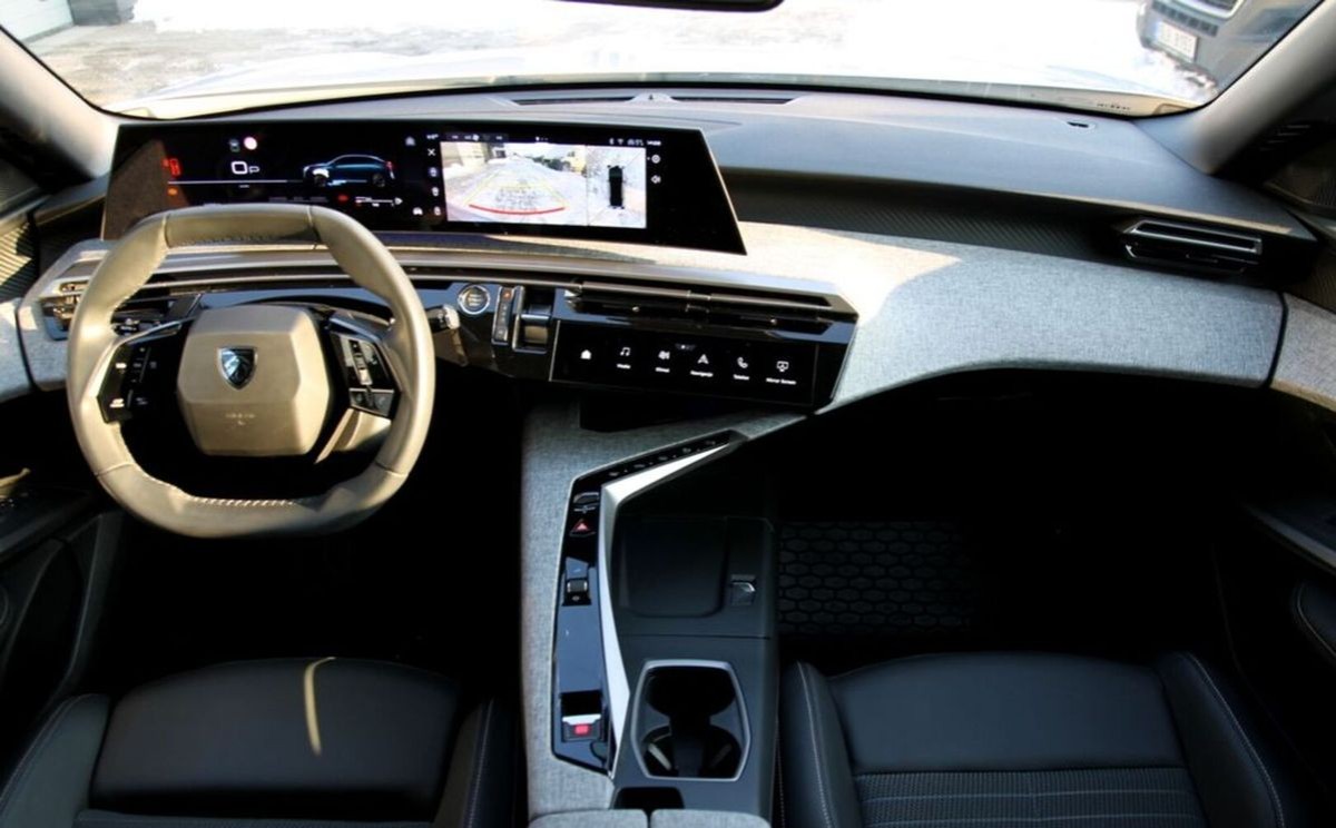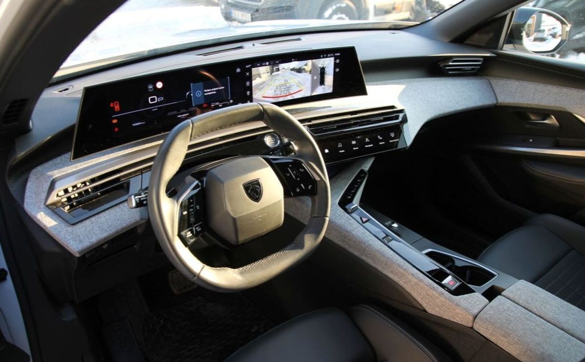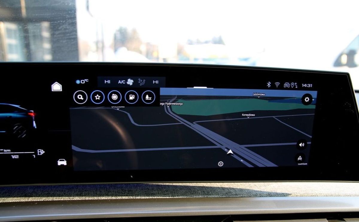 (Ładowanie smartfona bezprzewodowa (15 W), PEUGEOT i-Connect zaawansowany: Nawigacja satelitarna 3D, TomTom, polecenia głosowe, 4 x USB-C, Przełączniki wirtualne i-Toggles z 10 personalizowanymi skrótami, Wyświetlacz panoramiczny z zakrzywionym ekranem o przekątnej 21", prawa część ekranu dotykowa)