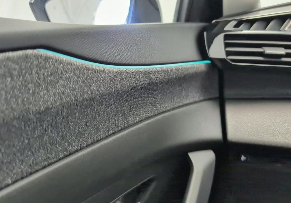 Panele materiałowe dekoracyjne wzdłuż deski rozdzielczej oraz na drzwiach