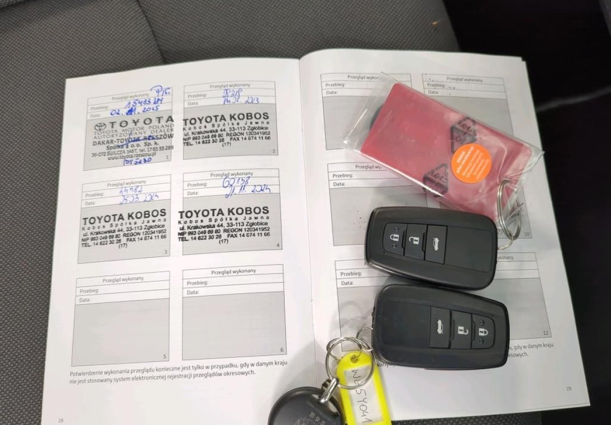 na bieżąco serwisowany, ostatni przegląd odbył się przy przebiegu 60.138 km w listopadzie 2024 wykonany w ASO Toyota Kobos