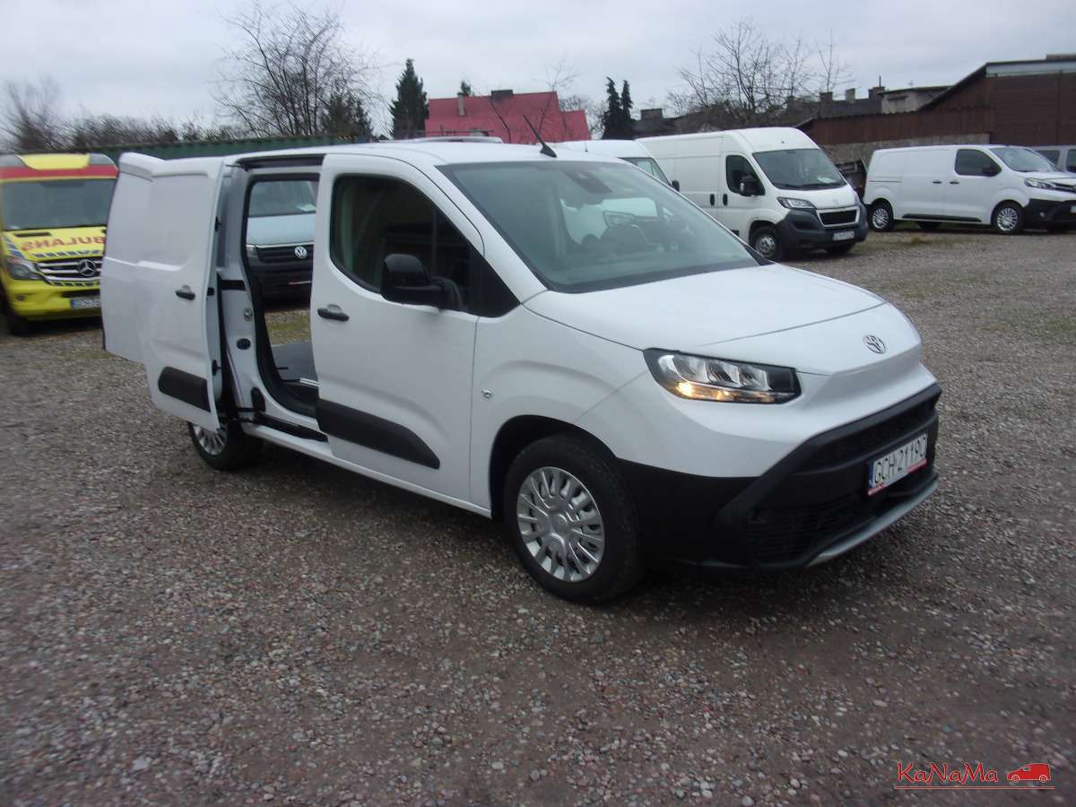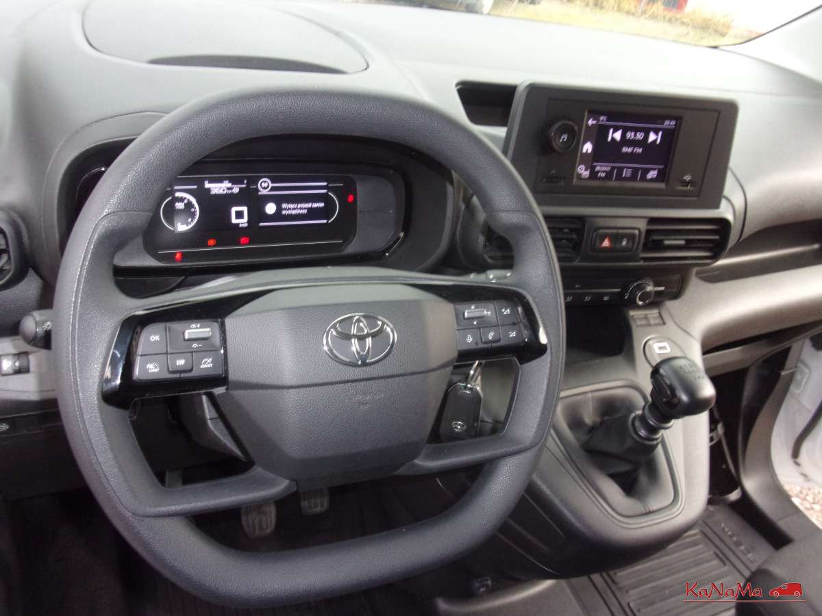 sprzedajemy toyotę proace city w nowym modelu, kupiona była w polskim salonie, jest zarejestrowana i ubezpieczona, cena 56700+vat, vat1 wbity w dowód, dobre wyposażenie, 2 kluczyki, 4 poduszki, klimatyzacja, wielofunkcyjna kierownica, f głosowe, tempomat, pdc tył, sos, półka, bagażnik porządnie obity, długość bagażnika ok 1,7m, czyta znaki, el. składane lusterka, 2xusb, bt,ITD, dostępne mamy bagażniki dachowe i regały,
