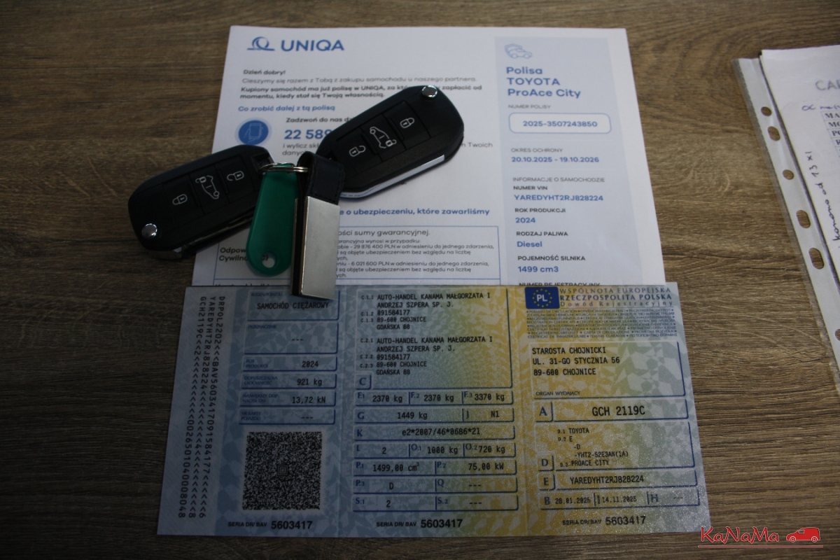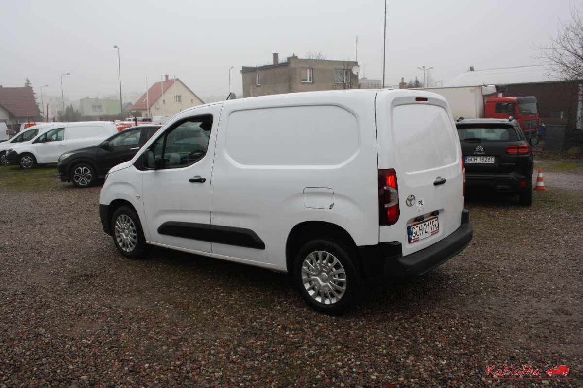 sprzedajemy toyotę proace city w nowym modelu, kupiona była w polskim salonie, jest zarejestrowana i ubezpieczona, cena 56700+vat, vat1 wbity w dowód, dobre wyposażenie, 2 kluczyki, 4 poduszki, klimatyzacja, wielofunkcyjna kierownica, f głosowe, tempomat, pdc tył, sos, półka, bagażnik porządnie obity, długość bagażnika ok 1,8m, czyta znaki, el. składane lusterka, 2xusb, bt,